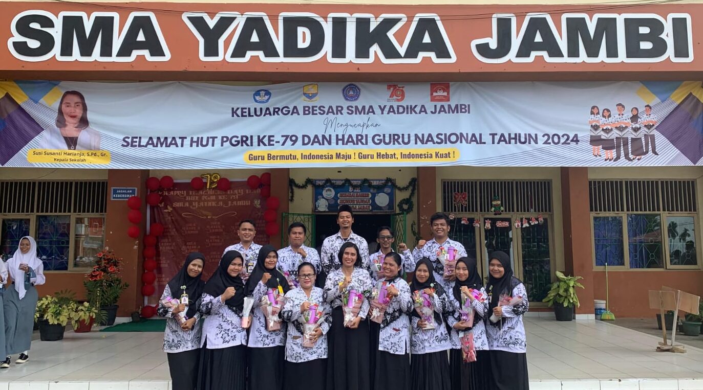 SMA YADIKA JAMBI, 24 November 2024 – Perayaan Hari Guru di SMA YADIKA JAMBI tahun ini berlangsung meriah dan penuh haru. Seluruh warga sekolah, mulai dari siswa, guru, hingga staf, ikut berpartisipasi dalam rangkaian kegiatan untuk menghormati jasa para guru.