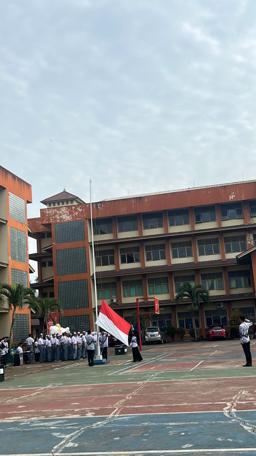 Acara diawali dengan upacara bendera di lapangan sekolah yang dipimpin oleh Bapak Dr. Jaswir, S.Kom., M.Kom., perwakilan dari Dinas Pendidikan. Dalam amanatnya, beliau menyampaikan apresias
